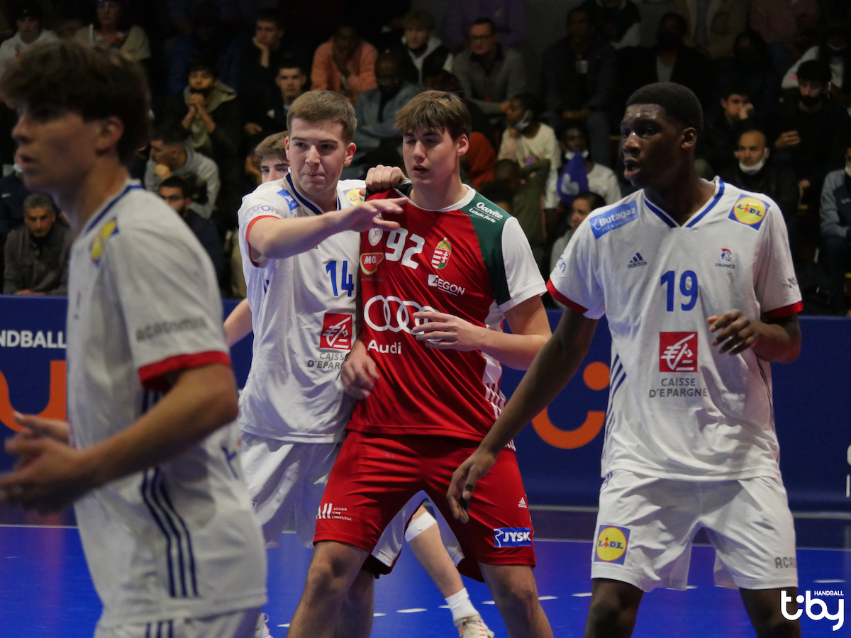 Dès le début du match, les deux équipes se livrent de véritables empoignades sur le terrain et se montrent bien agressives en défense. Edgar Bourillon est bien trouvé en position de pivot et ouvre le score (1-0, 1ère). La Hongrie répond directement et va même prendre le dessus sur le match après avoir provoqué un passage en force (1-2, 2ème). Les Magyars continuent de creuser l’écart face à une équipe de France qui a du mal en attaque. Menés de 2 buts (3-5, 8ème), Henri Kirtz va inscrire 3 buts de suite et permet aux français de prendre le dessus. Il est d’ailleurs bien aidé par le gardien de Tremblay, Graciel-Yanis Quere qui enchaîne les parades de grande classe (6-5, 9ème).
