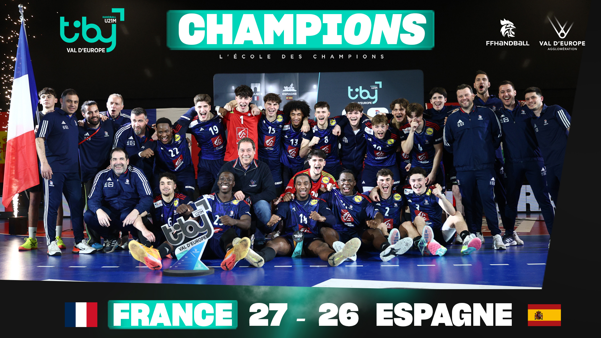 Les Tricolores l’emportent à l’arrachée face à la montagne espagnole, championne du Monde et d’Europe en titre. Les Français décrochent ce Tiby Handball Val d’Europe après avoir livré deux grandes performances contre la Hongrie en demi-finale et l’Espagne en finale !