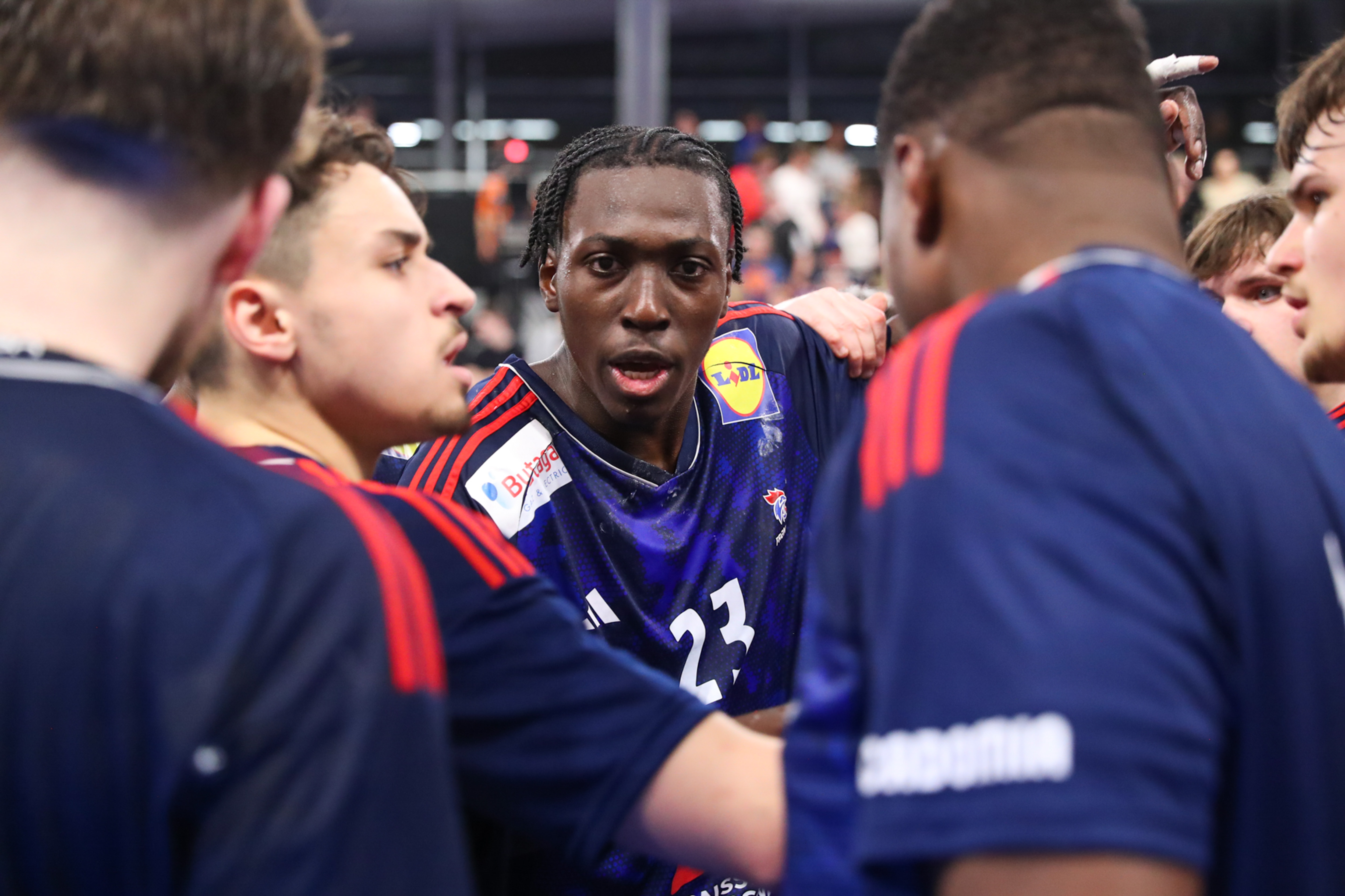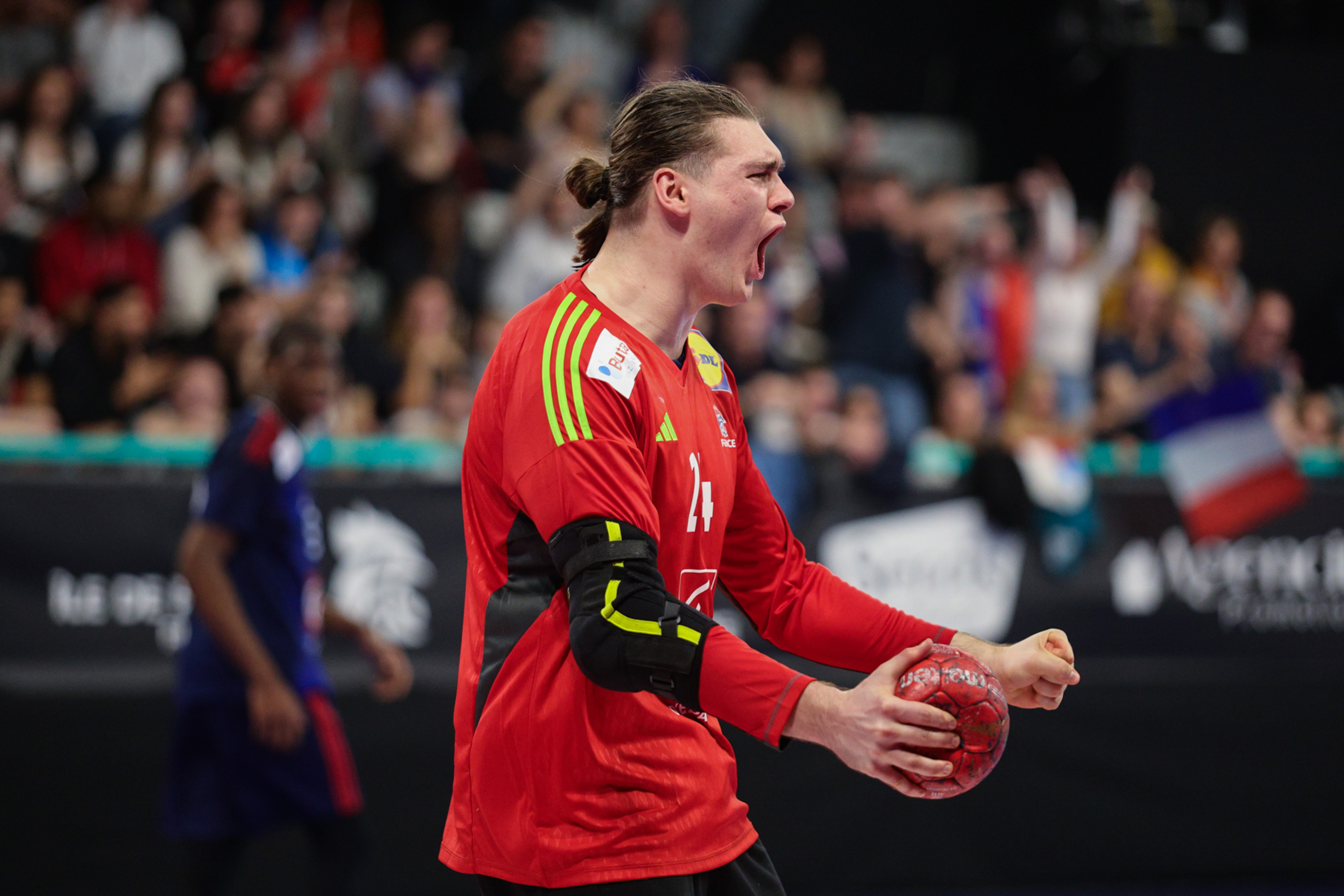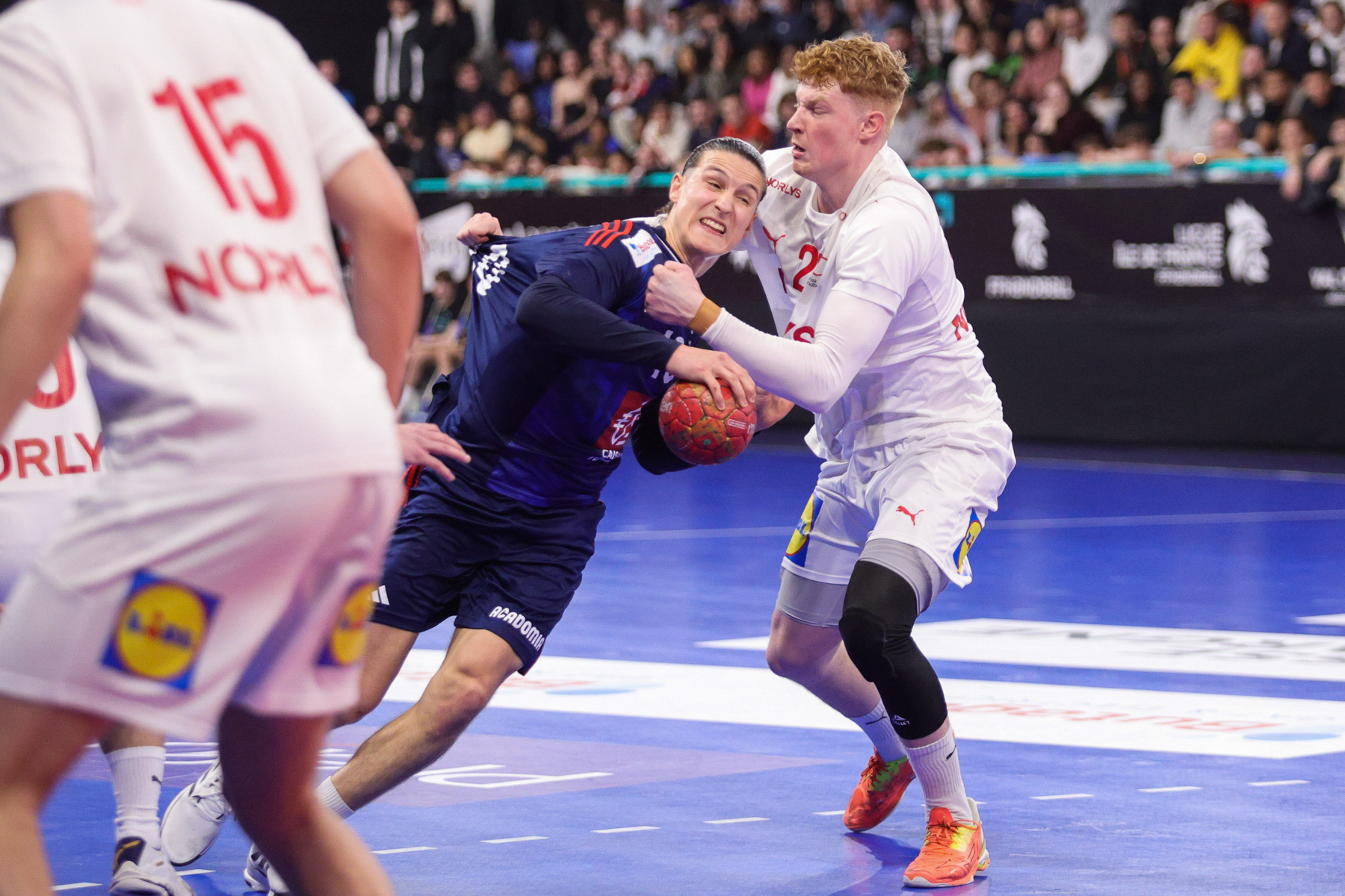 Avec un Niels Martin-Cussat imposant dans les buts et une base-arrière appliquée, les Français ont logiquement tenu tête à leurs adversaires (7-7, 15e) et se sont clairement mis au niveau et à la hauteur de l’ogre danois. Au coude à coude, les deux formations se sont livrées de véritables empoignades, notamment dans le secteur défensif, jusqu’à la pause (12-11, 30e).