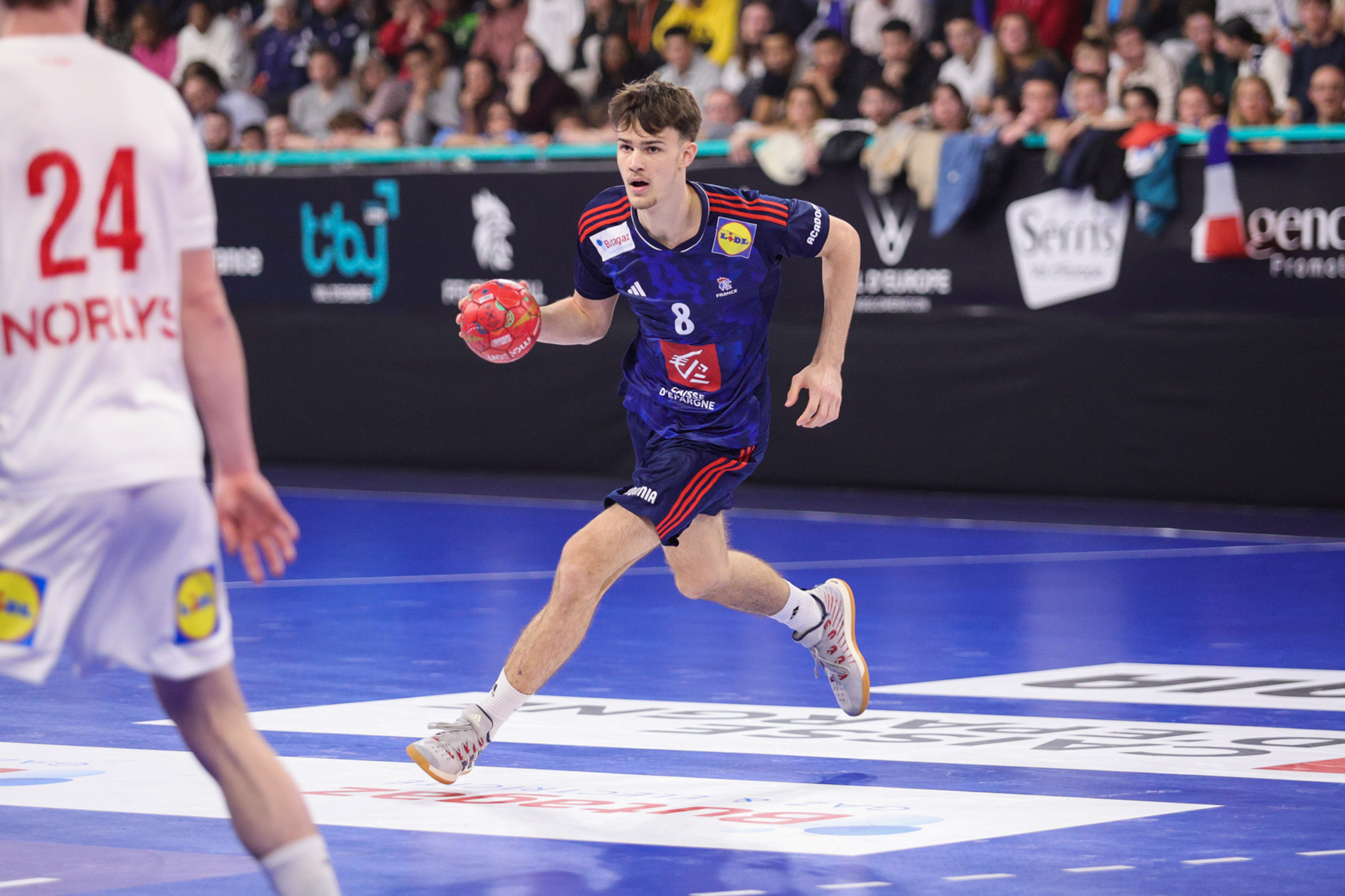 Le moins que l’on puisse dire, c’est que c’était un défi de taille qui attendait l’équipe de France en finale de ce Tiby Handball Val d’Europe. Face au vice-champion du monde danois, les Bleus de Yohann Delattre n’ont pas réussi à faire face, dans les premiers instants et se montraient impuissants, dans tous les secteurs de jeu (1-5, 7e). Mais poussés par leurs supporters et un temps-mort, les tricolores ont su relever la tête et, sous l’impulsion de l’excellent Eliott Desblancs, réduire petit à petit l’écart (4-6, 10e).