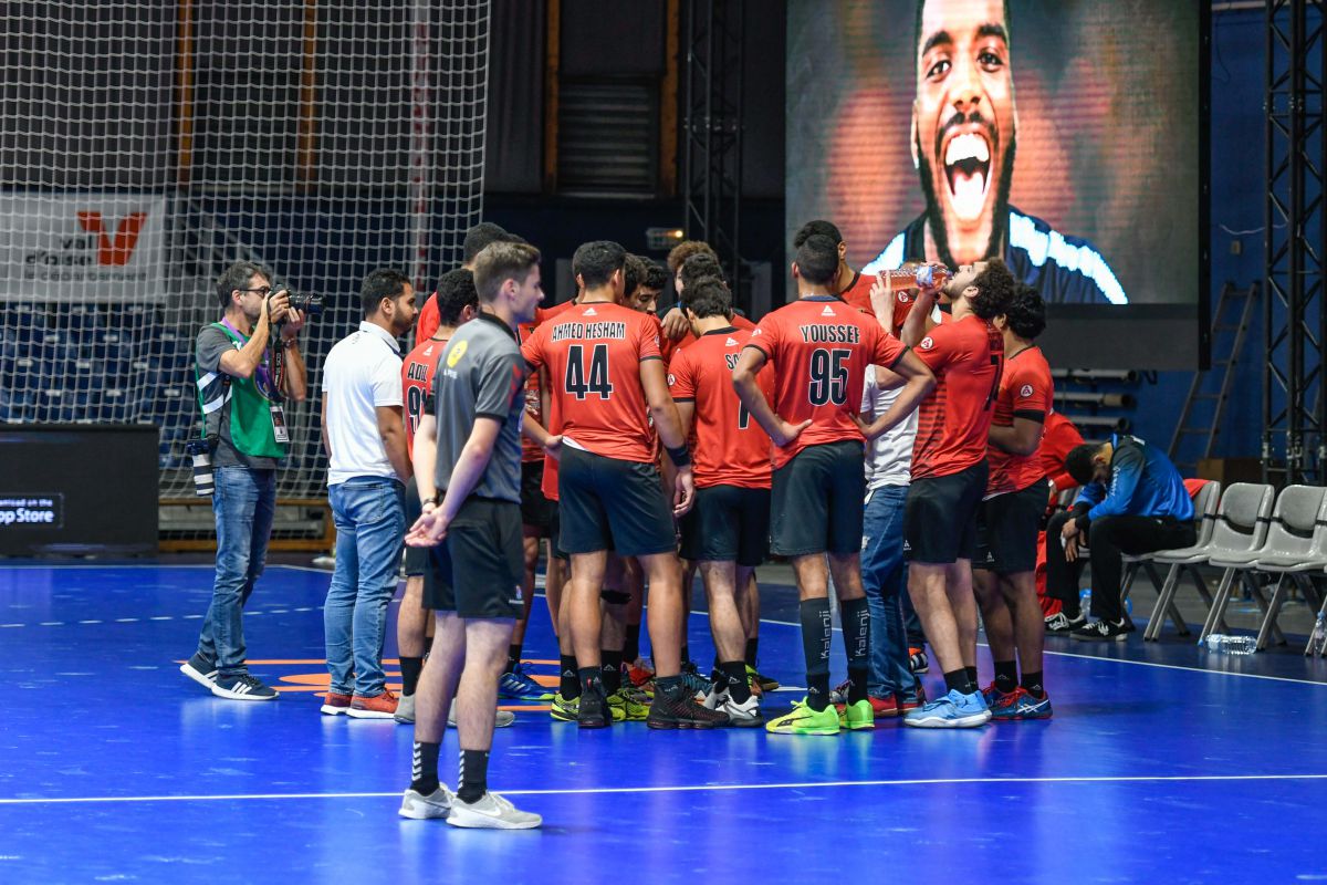 Malgré deux combinaisons hongroises conclues par des chabalas de Aron Czakó et Tamas Tóvizi, l’Egypte parvient à répondre dans la foulée. En laissant l’initiative à la Hongrie, les Egyptiens finissent par trouver l’ouverture en déployant un jeu de contre attaque pour revenir à la marque (7-7) à 10 minutes de la mi-temps. C'est à la 26e minute que le score bascule en faveur de l'Egypte sur une contre attaque conclue dans le but vide (10-9). C'est finalement sur un jet de 7m à quelques secondes de la pause que l'Egypte conclue cette première mi-temps en tête (13-12).