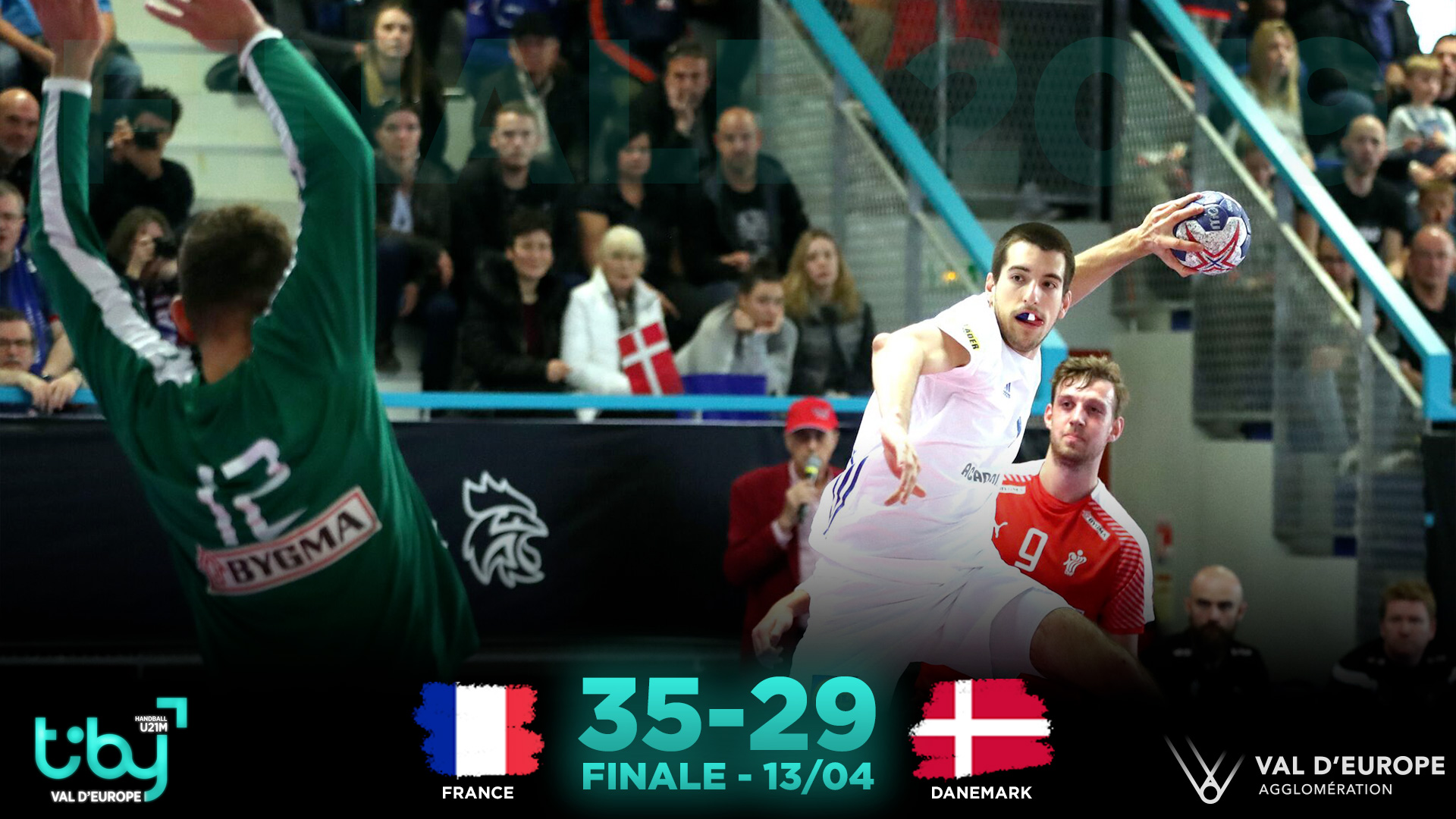 Malgré de belles combinaisons danoises, notamment réalisés par les deux pépites du GOG Handbold Mathias Gidsel (7/8) et Emil Laerke (7/12), Kyllian Villeminot continue de se démener pour enfoncer le clou et s'offre deux nouveaux buts (17', 18'). L'équipe de Yohan Delattre relâche légèrement la pression et laissent les Danois revenir à 3 buts à 9 minute du terme de cette finale (28-25, 51'). C'est une fin de match bien matrisée que les Bleus offrent aux spectateurs de Serris (34-29, 57'). La salle debout célèbre son équipe de France pour la denière minute de ce match. Hugo Brouzet inscrit l'ultime but de cette rencontre.