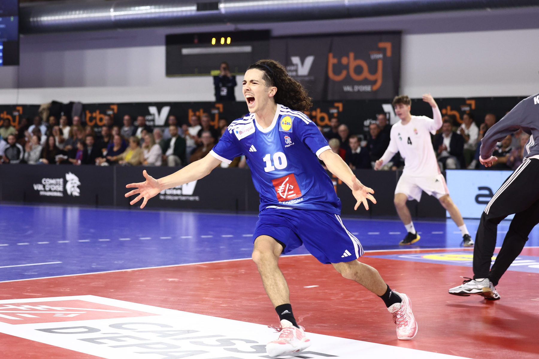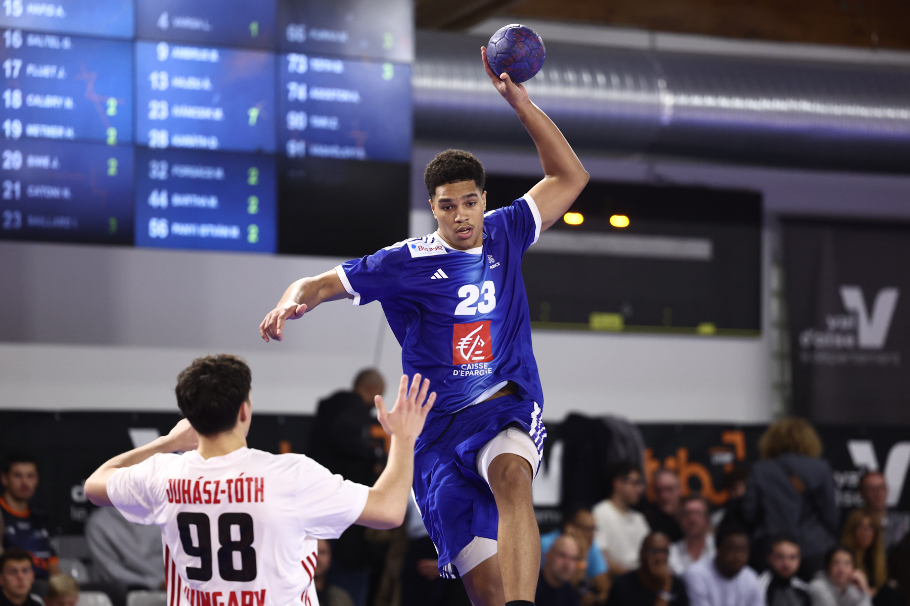 Ambitieuse de démarrer de la meilleure des manières possibles ce nouveau chapitre de son histoire avec le Tiby Handball Val d’Oise pour première apparition en équipe de France des moins de 19 ans, la génération 2008-2009 avait fort à faire ce jeudi soir à Eaubonne en défiant la Hongrie. Face à une formation réputée pour être solide et agressive en défense, mais que Jean Baradat et les siens avaient battu à quatre reprises la saison passée, la France démarrait bien ce duel avec un premier but d’Isaac Saillard, en bon capitaine, qui guidait parfaitement les siens (1-0, 3e).