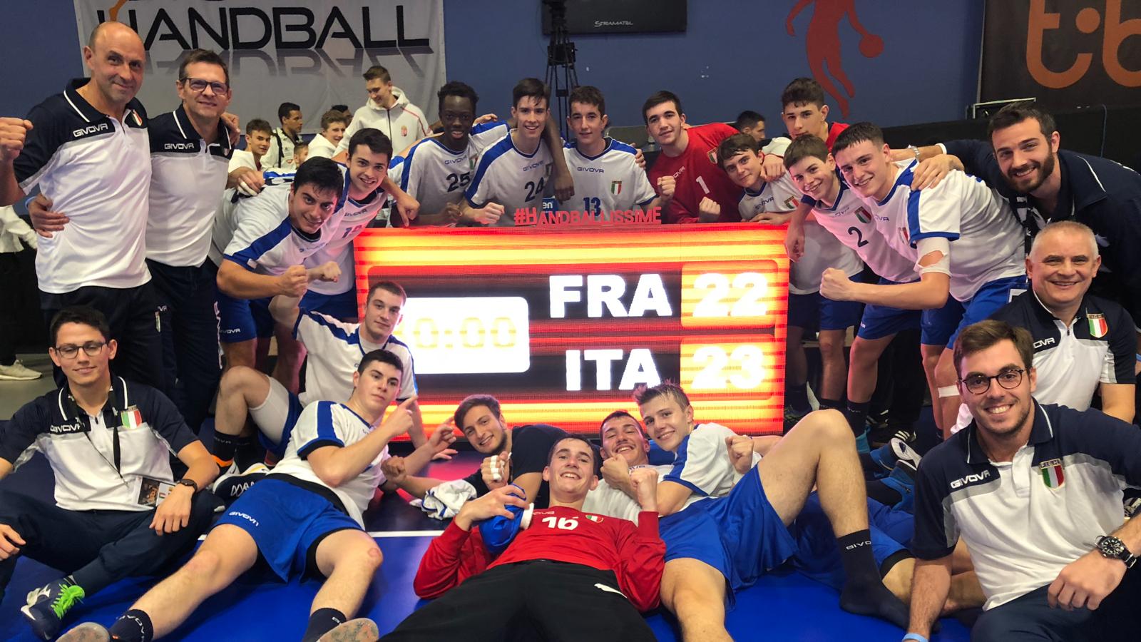 Pourtant, après un 5-0 en 5 minutes, c'est l'Italie du duo Marco Mengon (6 buts) - Kreshnik Kasa (5 buts) qui égalise à 12 minutes de la sonnerie (19-19). Charles Bolzinger, auteur de 2 face à face victorieux, pensait permettre à ses coéquipiers de tenir le score mais c'est finalement la Nazionale qui vire en tête sur un jet de 7 mètres à la 53e : 20-19, 21-19, puis 22-19. C'en est terminé, le break est fait. Malgré la clameur du public suite à une réduction du score dans la dernière minute, la chance de nos jeunes français était passée, score final : 23-22.
