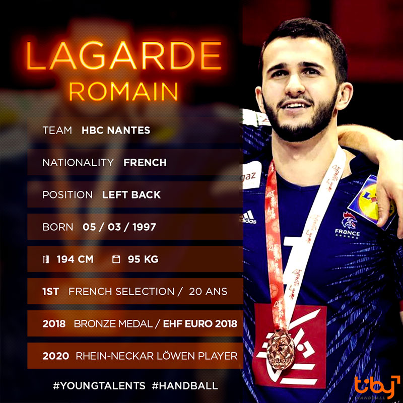 Mai 2018, Romain LAGARDE signe un contrat de trois ans à compter de 2020 pour le club allemand des Rhein-Neckar Löwen. Quelques jours plus tard, il participe à la Finale 4 de la Ligue des champions : vainqueur en demi-finale du Paris Saint-Germain, il s'incline en finale face à un autre club français, le Montpellier Handball. L'éclosion de ce jeune joueur breton est tel, qu'il intègre les Experts pendant la Golden League. Nous souhaitons à notre Ancien joueur du #TIBY2014, une excellente carrière. Ça promet !