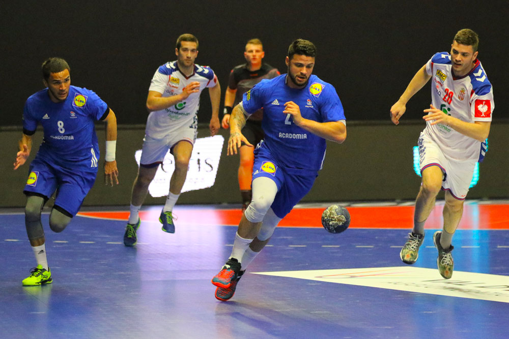 Les Serbes trouvent la solution pour recoller au score grâce à une bonne circulation de balle et un jeu avec le pivot efficace. Le joueur du Partizan Vuk Milenkovic (9/11) pose des problèmes à l’équipe de France qui ne trouve pas de solution pour le contrer. Les Serbes restent au contact et profitent de l’espace libéré pour scorer des 9m. Le score est de 9 partout au quart d’heure de jeu.