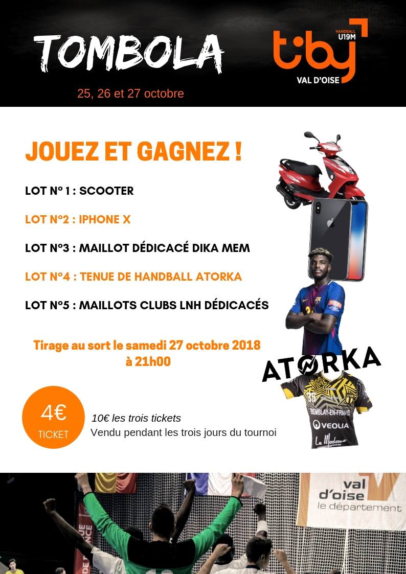Cette année, le TIBY organise une tombola et vous offre la possibilité de gagner un SCOOTER, un iPhone Xs, un maillot dédicacé de Dika Mem et bien d'autres lots ...